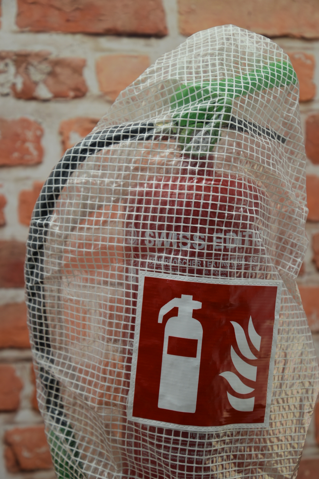 - Transparente Folie, damit der Feuerlöscher sichtbar bleibt
